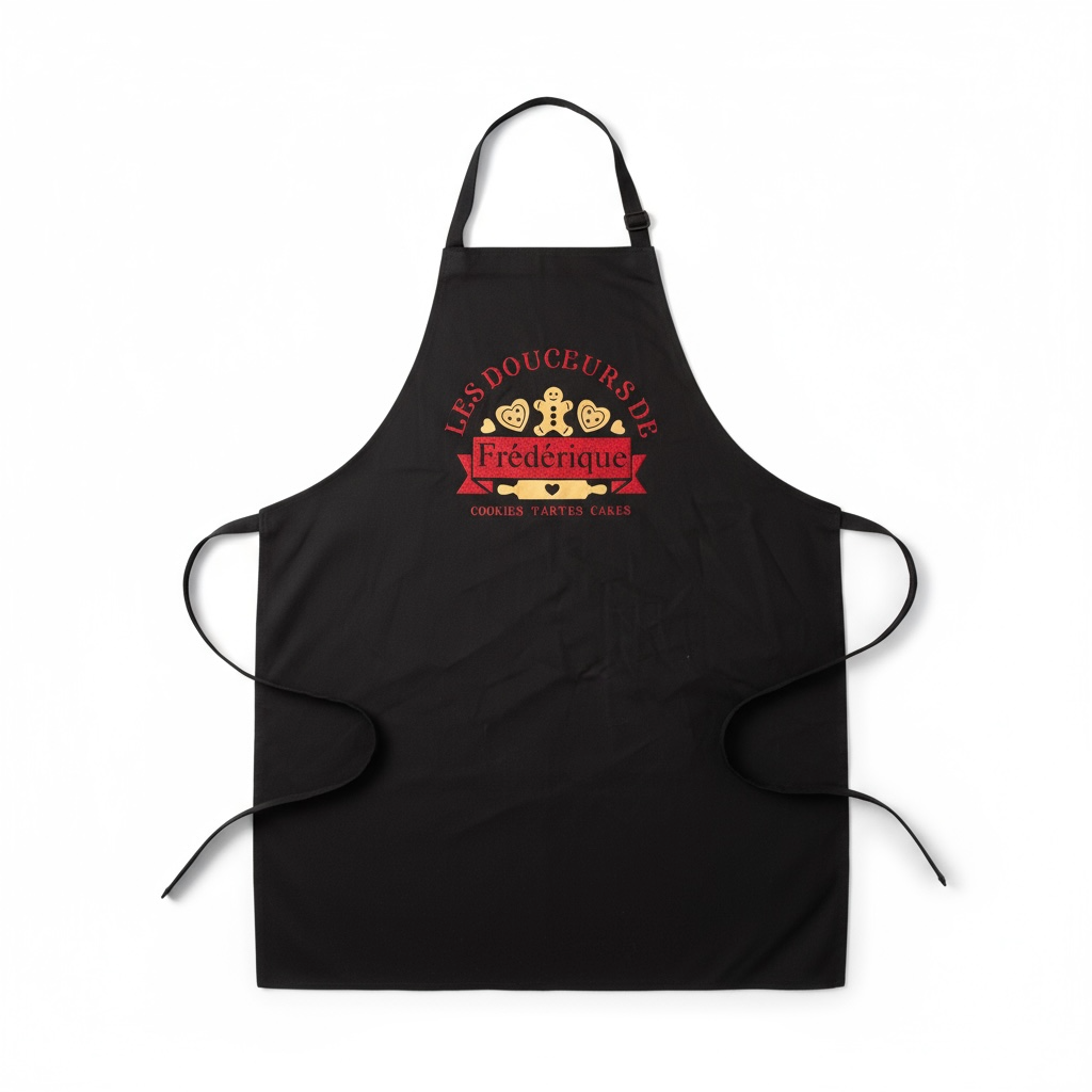 Le tablier est fait en tissu 100% coton 180 gr/m².. il repousse la goutte d'eau pour garder vos vêtements au sec.